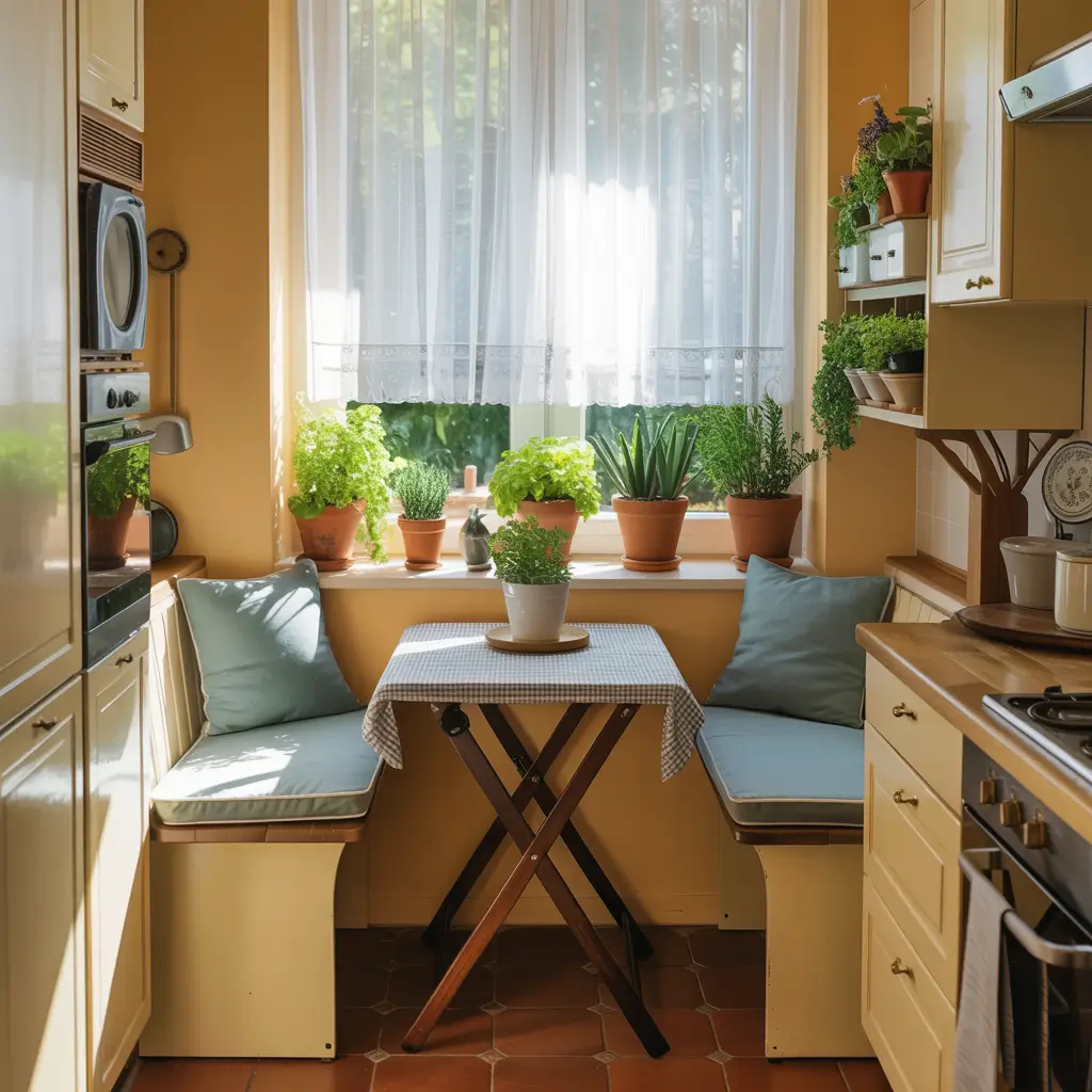 Working with a truly tiny kitchen? I feel you. My first apartment’s kitchen was so small, I could touch both walls with my arms spread. But you know what? I still managed to create a cozy dining corner.