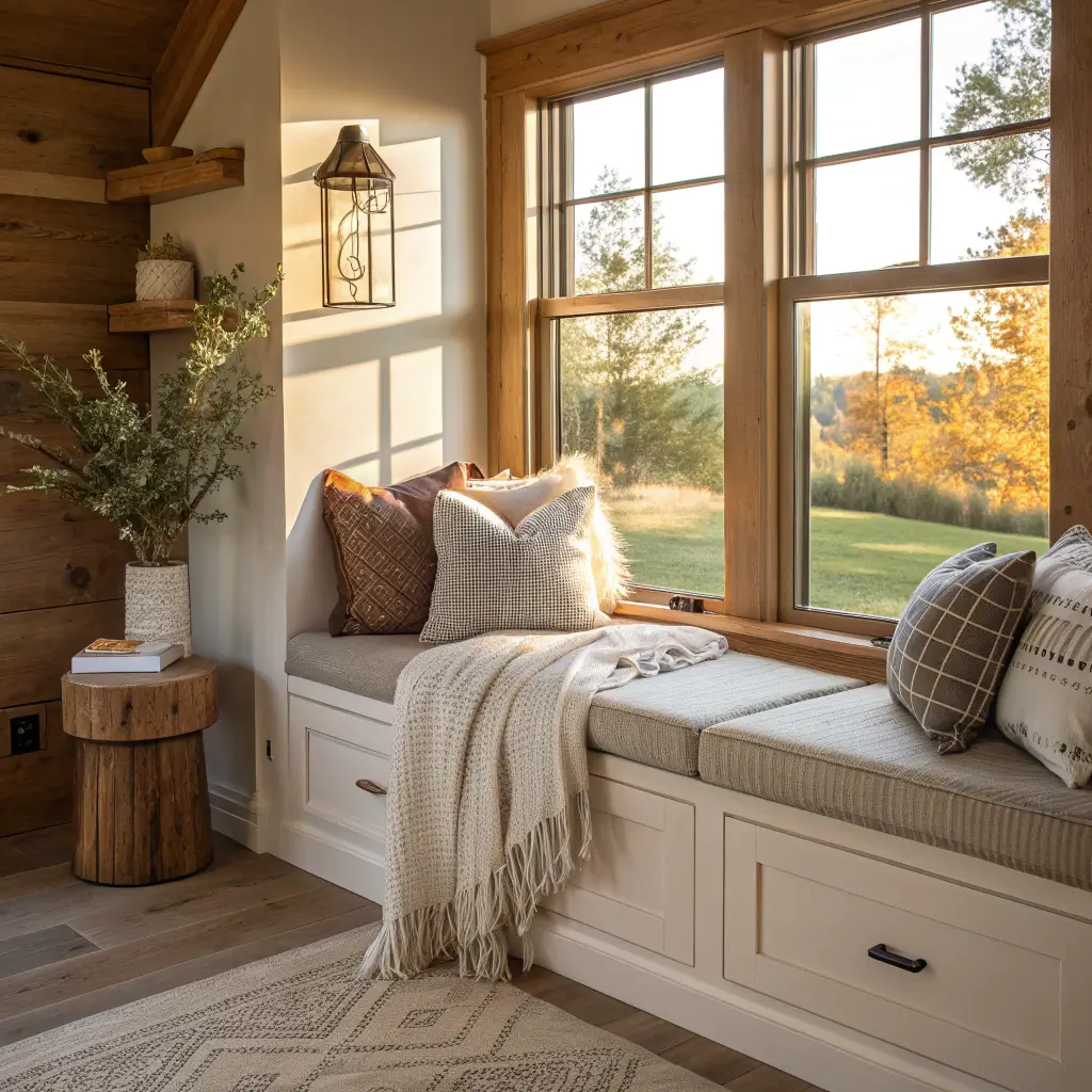 Got a window with a decent sill? Congratulations, you’ve got potential reading nook gold. Window nooks scream farmhouse charm and provide extra seating without eating up floor space.