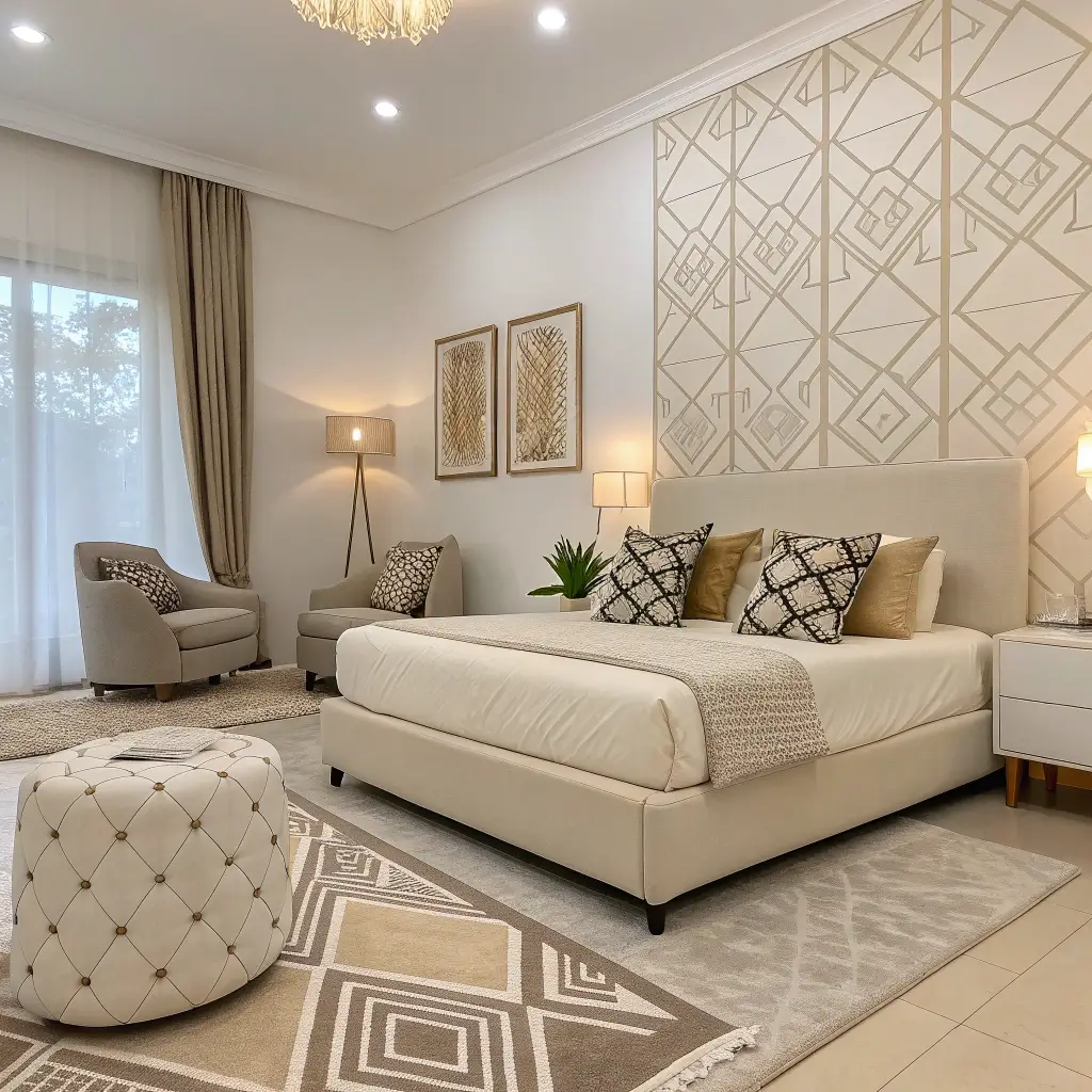 Ready for something sleeker? Modern design in cream and beige proves that neutral doesn’t mean boring. This style embraces clean lines, geometric patterns, and a sophisticated edge that feels fresh and current.