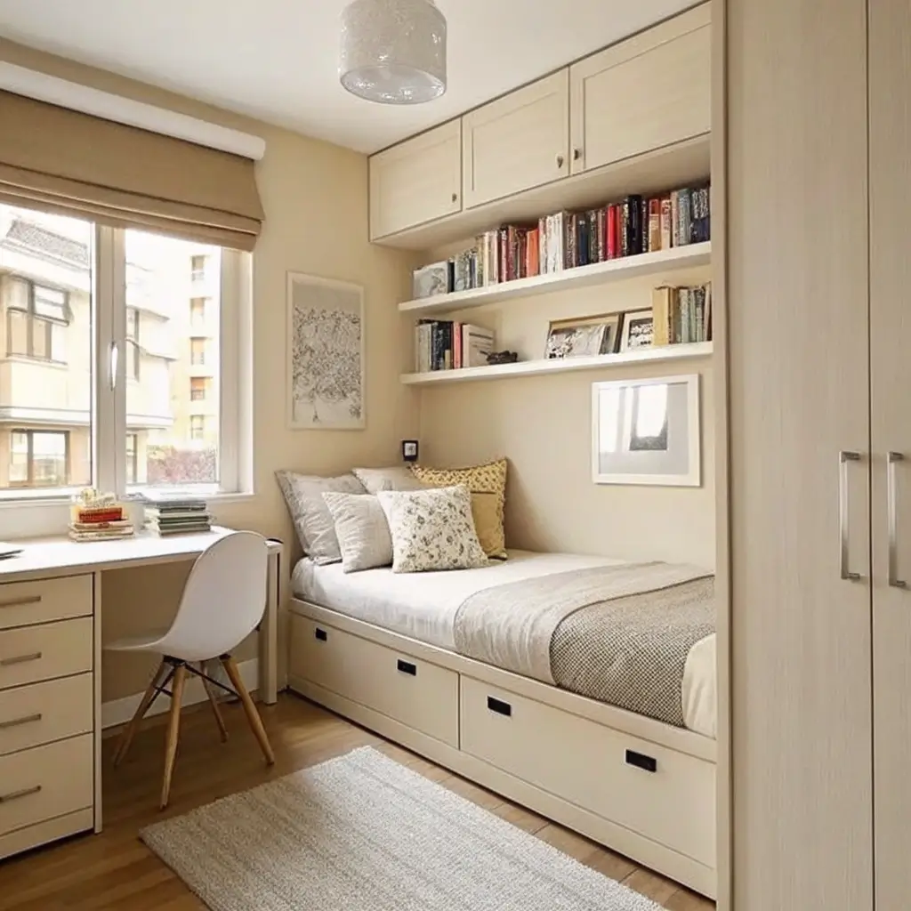 The strategy here is all about maximizing every square inch while keeping things light and airy. Wall-mounted everything is your best friend. Seriously, get that nightstand off the floor and watch your room grow.