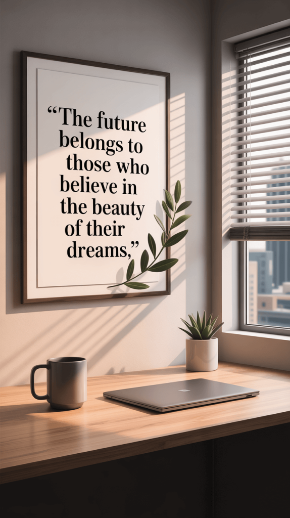 Words have power. A well-chosen quote or a beautiful piece of art can serve as a visual anchor throughout your day.