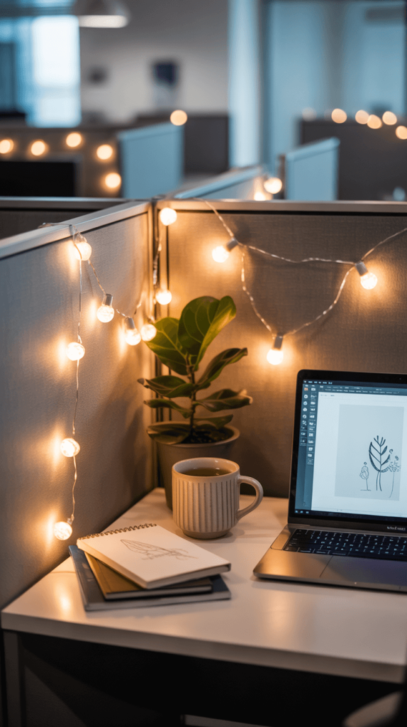 - Style Matters: Go for fairy lights for a subtle twinkle, or larger Edison bulbs for a more industrial vibe. You can drape them along the top of your cubicle walls or coil them in a large jar for a DIY lamp.
