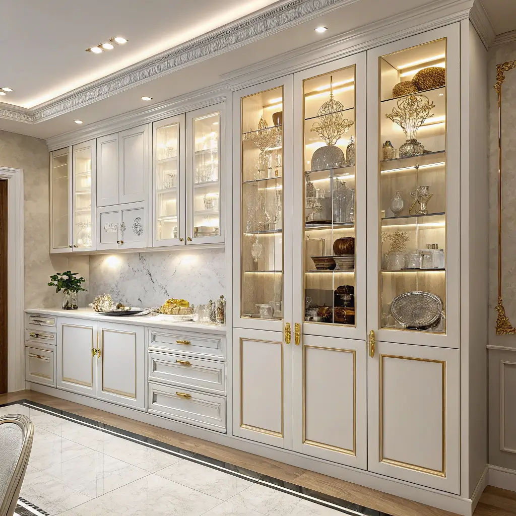 Want storage that doubles as decoration? Glass front cupboards let you show off your prettiest pieces while keeping dust at bay. They’re like museum cases for your kitchen, and who doesn’t want to feel fancy while making breakfast?