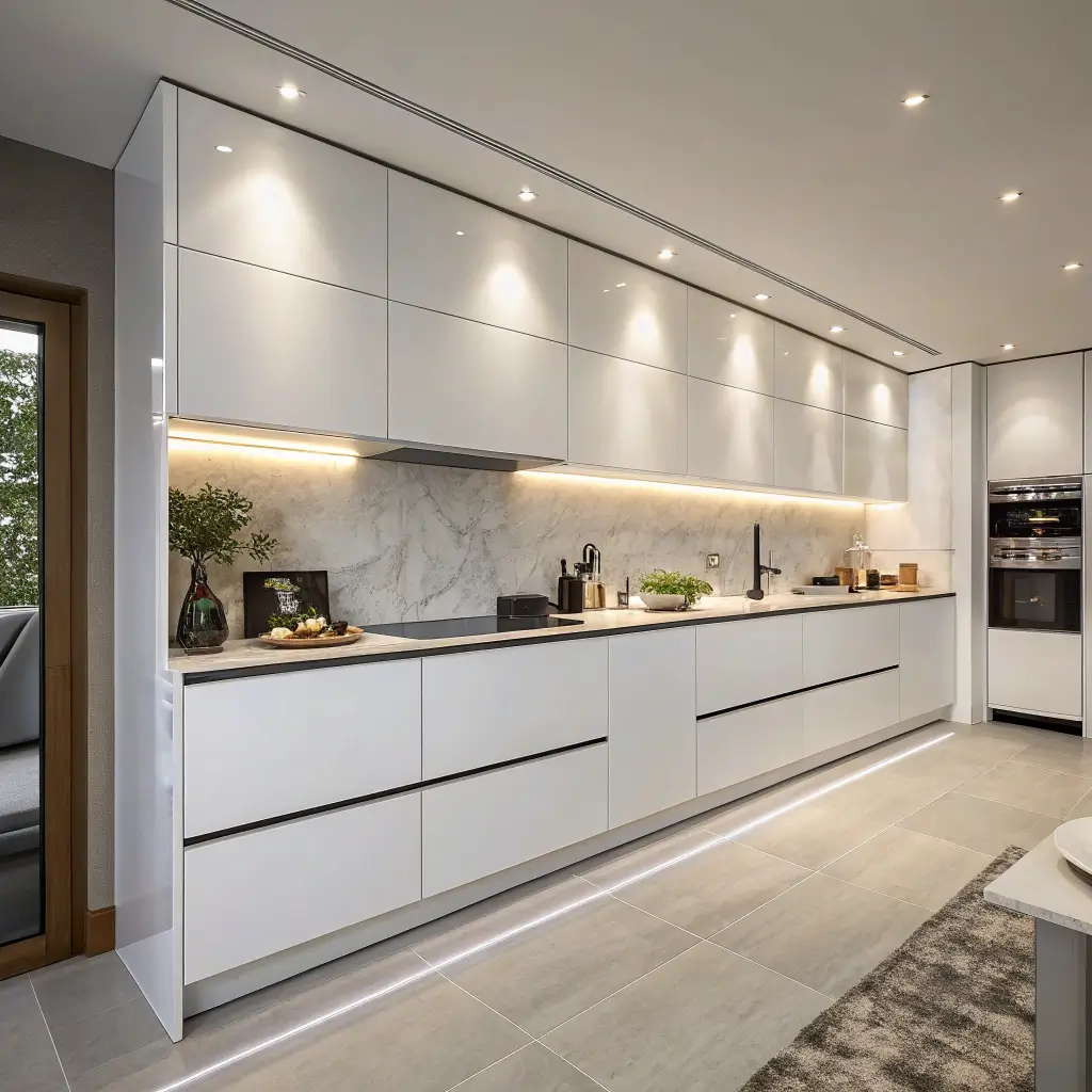 Let’s kick things off with the design that everyone seems obsessed with lately – and for good reason. Minimalist white cupboards create this incredible illusion of space that makes even tiny kitchens feel massive. I installed these in my last apartment, and suddenly my 100-square-foot kitchen looked like something out of a magazine.