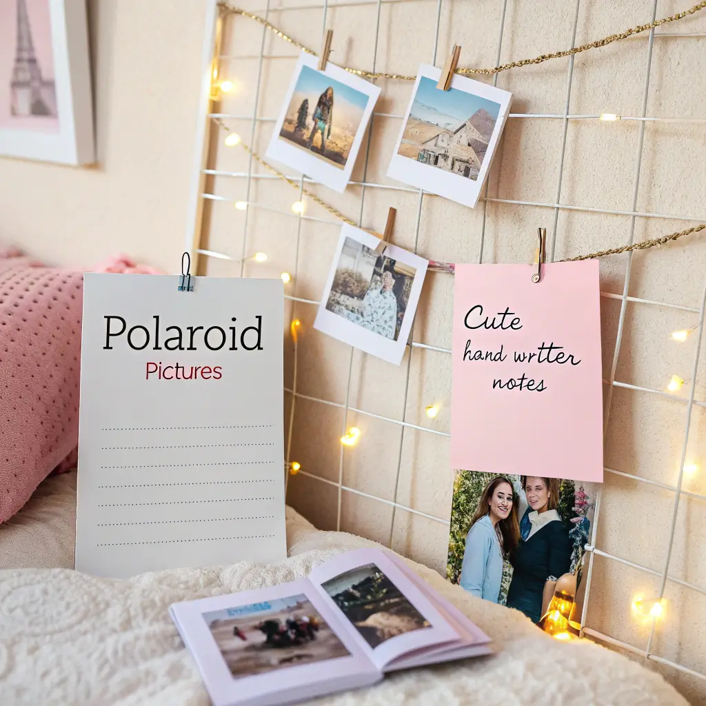 Remember when everyone was obsessed with Polaroid cameras? Well, that trend never really died, and Polaroid string displays prove it. Whether you use actual Polaroids or print photos in that style, stringing them up creates this casual, lived-in vibe that makes your room feel like home.