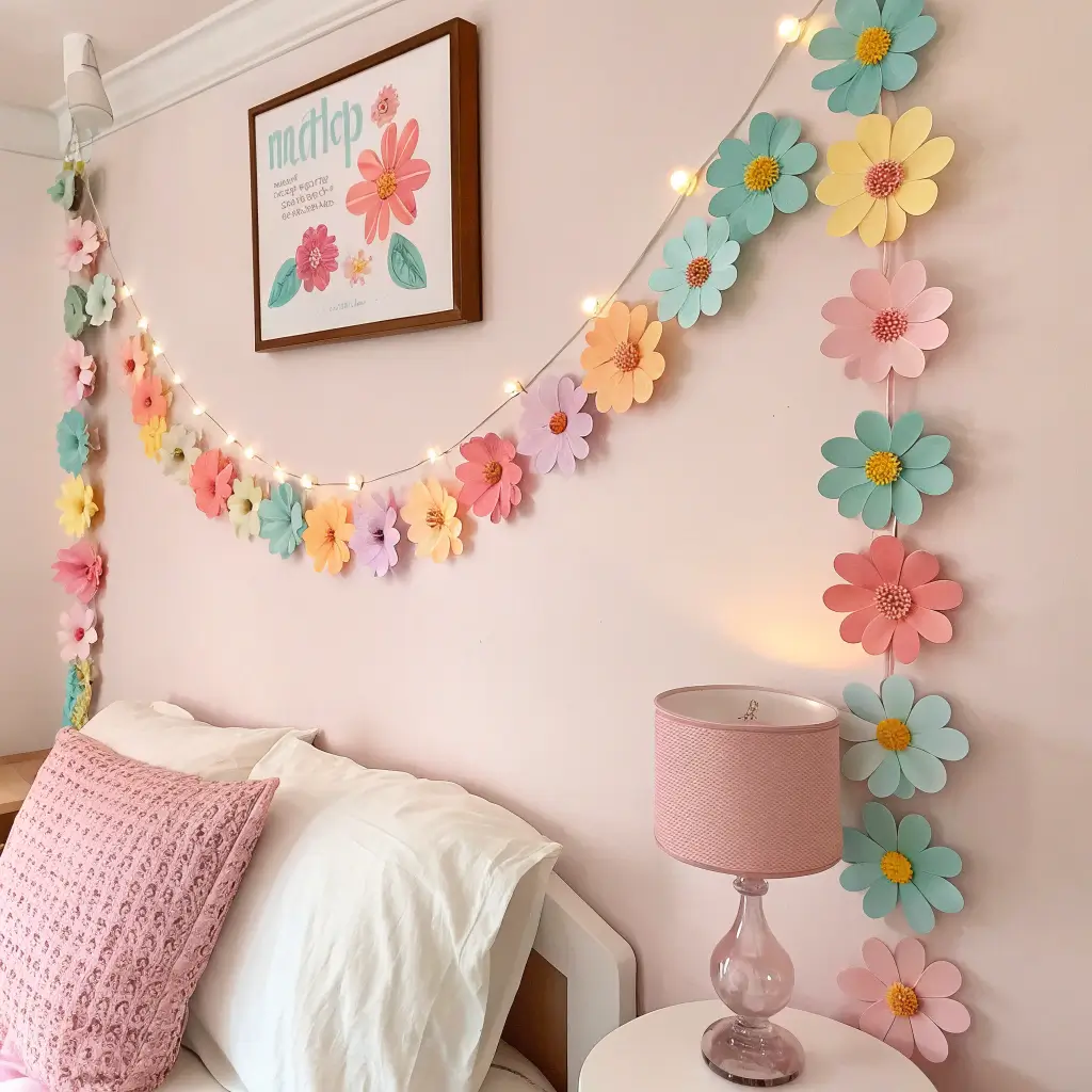 Real flowers are beautiful but expensive and temporary. DIY paper flower garlands give you that floral beauty year-round without the maintenance or wilting disappointment. Plus, you can match them exactly to your room’s color scheme.