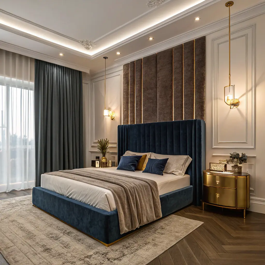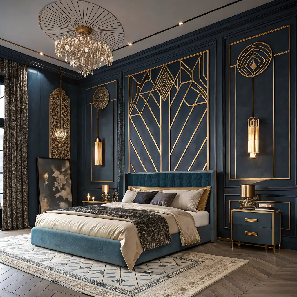 Dark Blue Art-Deco Glam Bedroom