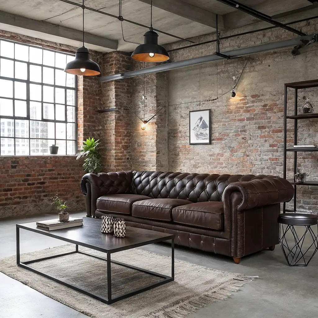 Industrial Loft Style with Dark Brown Couch
