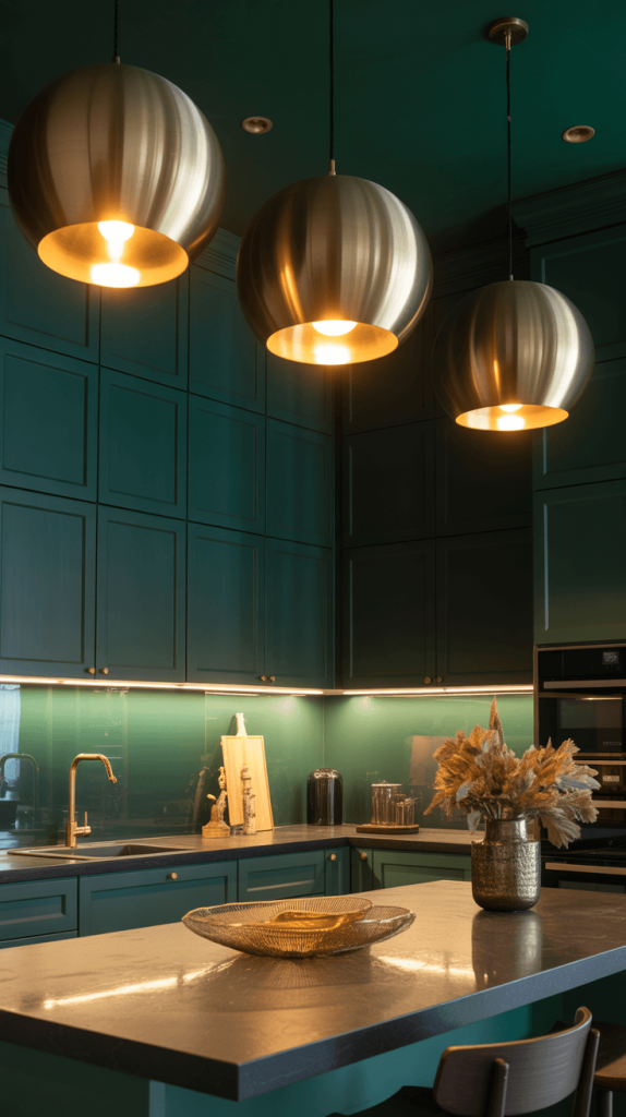 12. Hollywood Glam: Dark Green and Gold: A Glamorous Kitchen Pairing