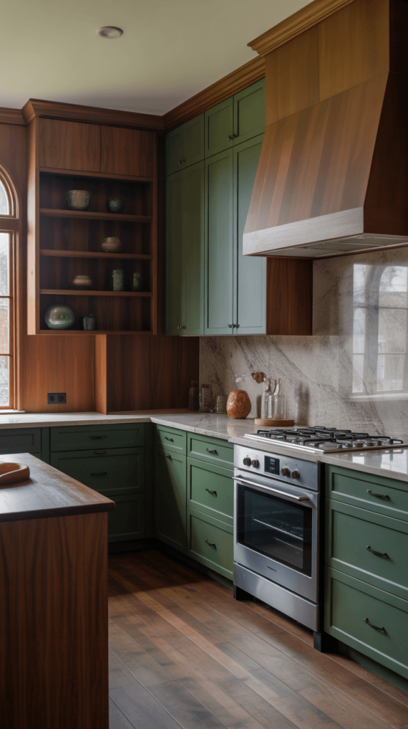 This approach takes the elegance of green and makes it feel accessible, comfortable, and deeply rooted. It’s the perfect kitchen for someone who loves to cook from scratch and entertain casually.