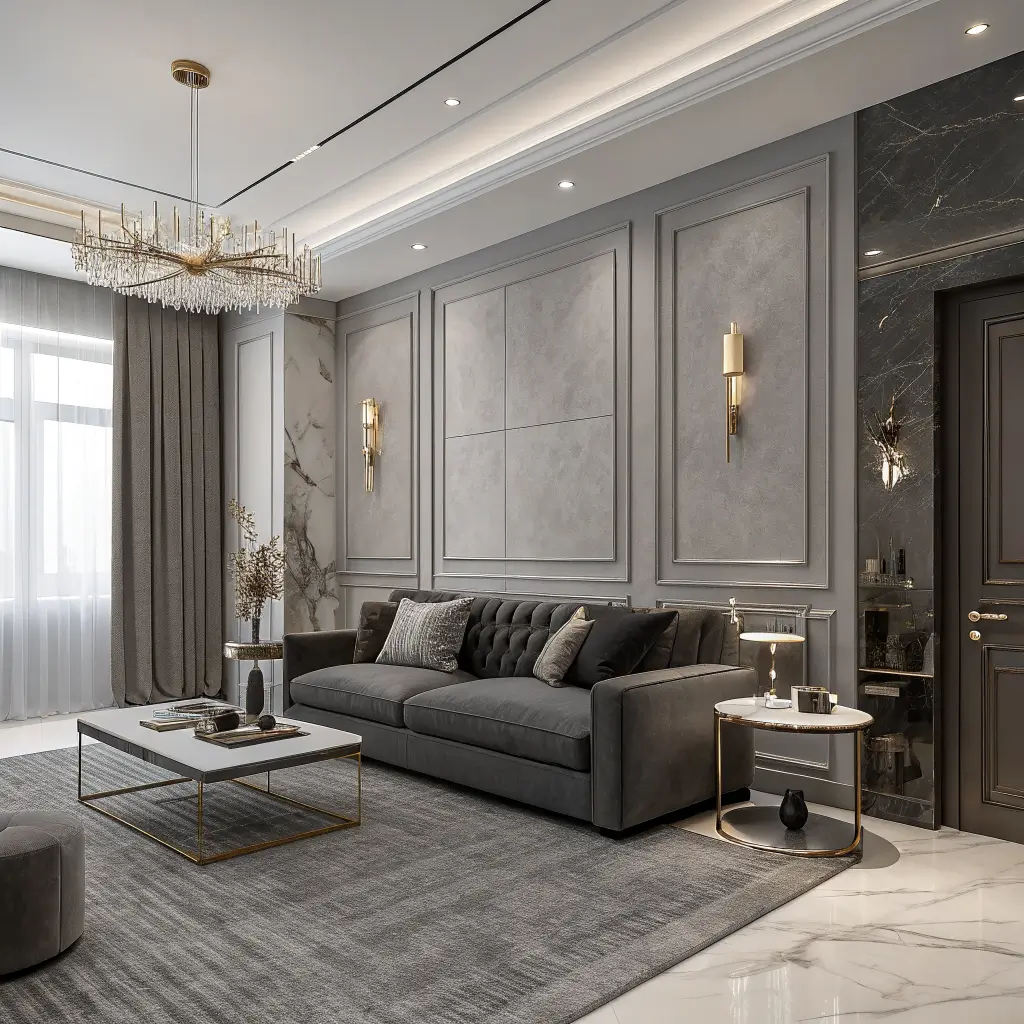 Want to feel rich without actually being rich? Add metallic accents to your dark grey couch setup. I’m talking gold picture frames, silver lamps, copper side tables â€“ basically anything shiny that catches light and screams expensive.