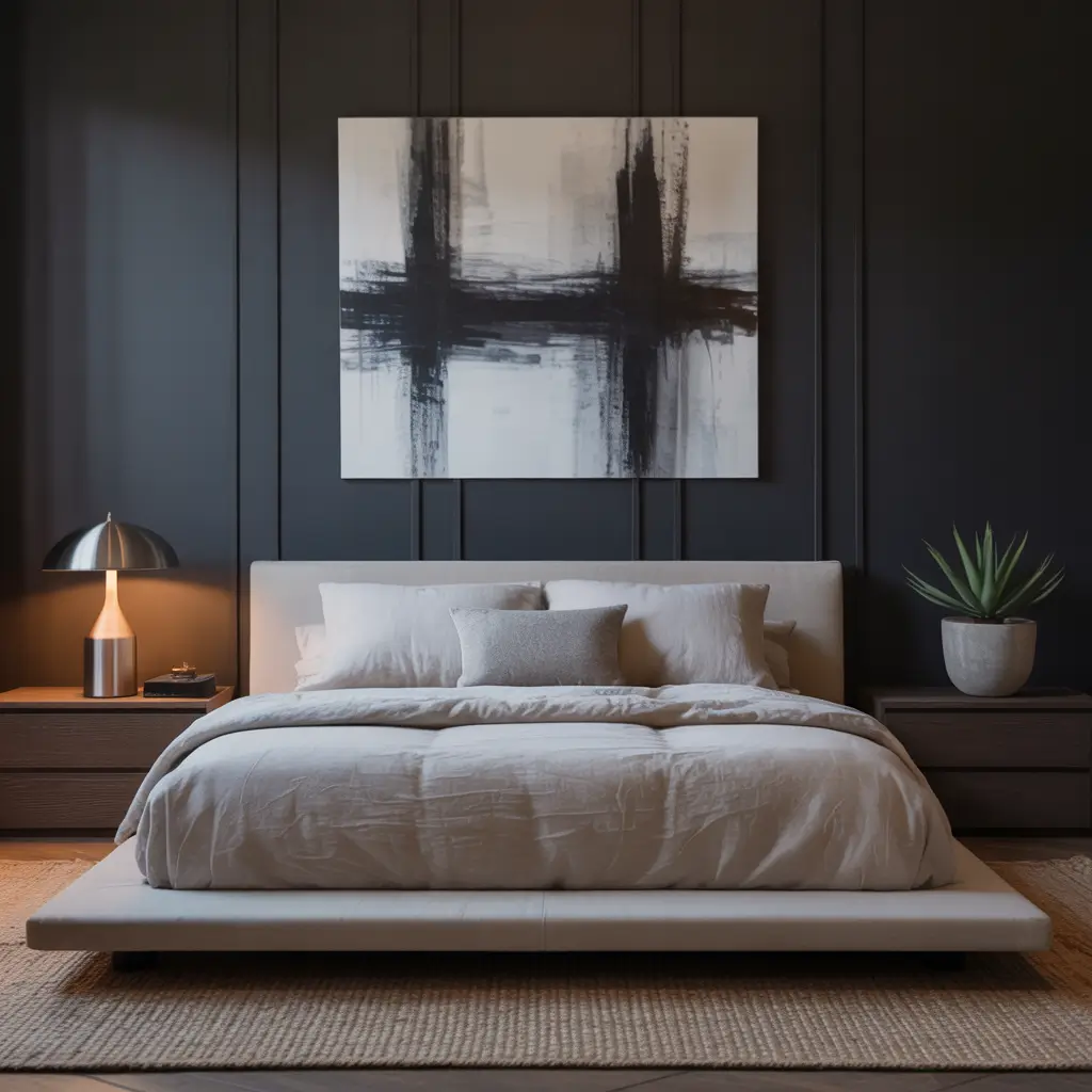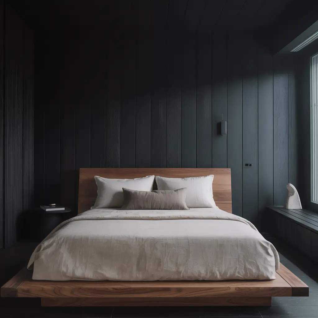 Moody Charcoal Minimalist Bedroom