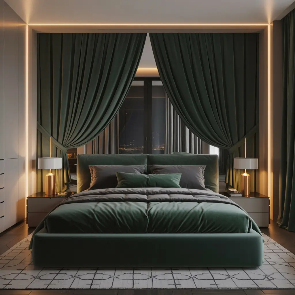 I went full send on this in my guest bedroom. Dark sage walls, an emerald velvet headboard, and brass accents everywhere. My friends literally fight over who gets to stay in that room now :). The secret sauce? Green works with your circadian rhythm better than other dark colors. Something about the connection to nature helps your brain relax faster.