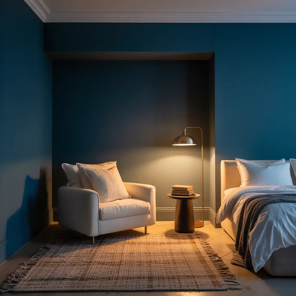 I carved out a corner of my bedroom for exactly this purpose. Midnight blue walls in just that section, a vintage leather chair I scored on Facebook Marketplace, and a brass floor lamp. It’s become my favorite spot in the entire house. Something about that dark cocoon makes focusing on a book so much easier.