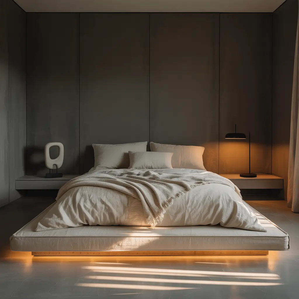 Dark Minimalist Bedroom with Ambient Lighting