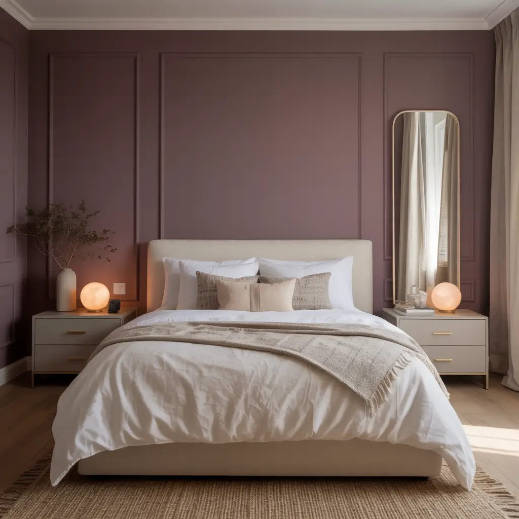 Deep Plum and Soft Neutrals Modern Bedroom