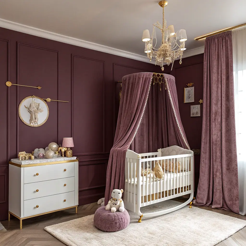 Plum might not be your first thought for a nursery, but hear me out – deep plum creates the most incredible, regal atmosphere. It’s unexpected, sophisticated, and somehow both bold and soothing. Plus, it works beautifully for any gender, which is perfect if you’re keeping things surprise or planning for future siblings.