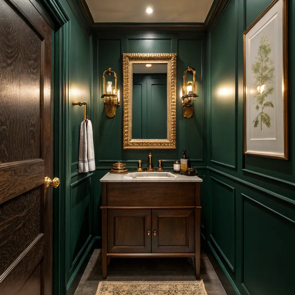 The trick with emerald walls? Layer your greens. Start with a deep base color, then add emerald accessories – think malachite soap dispensers, jade-colored hand towels, or even a small potted fern. This creates depth that flat paint alone can’t achieve.