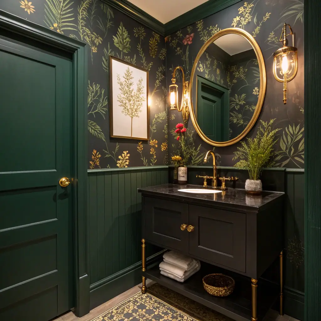 Botanical wallpaper on one accent wall paired with matching paint on the others creates cohesion without overwhelming. Mix in natural materials like rattan mirrors or wooden vanities to enhance that organic feel.