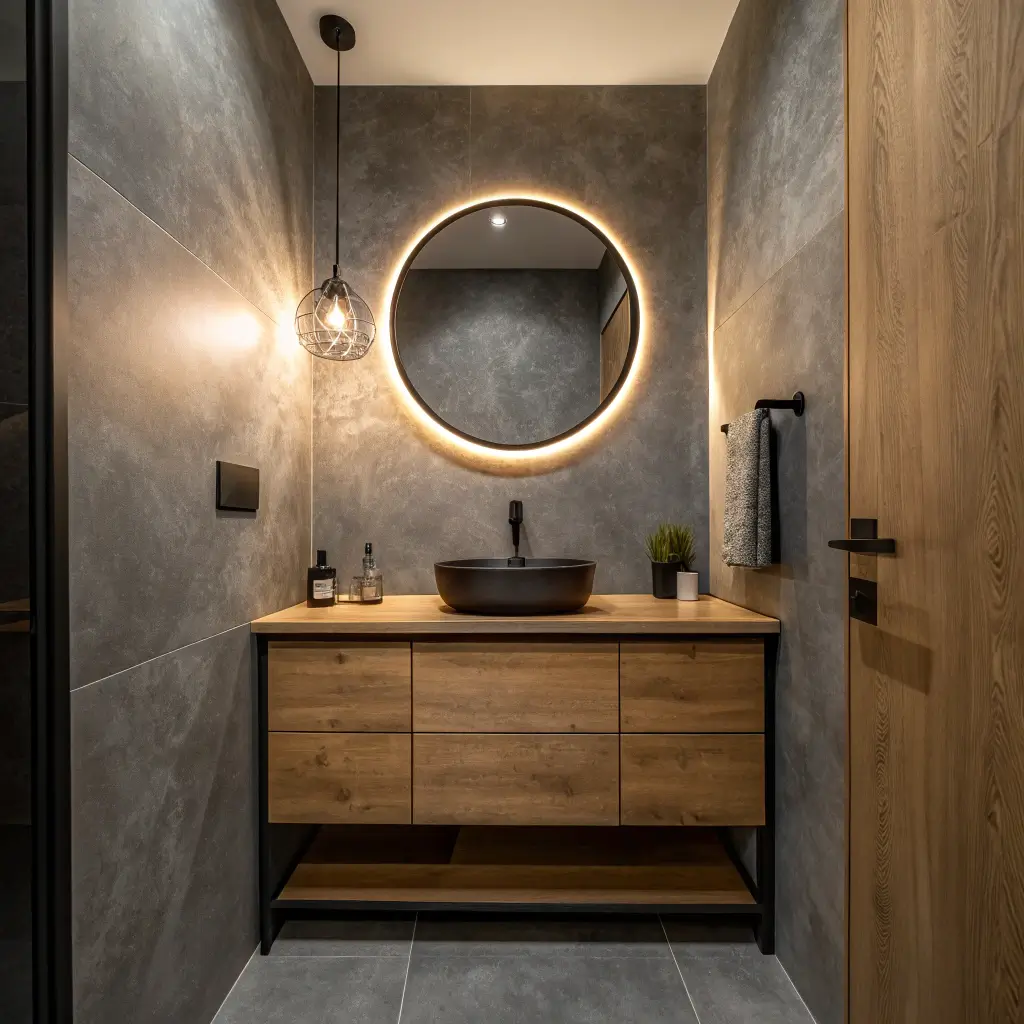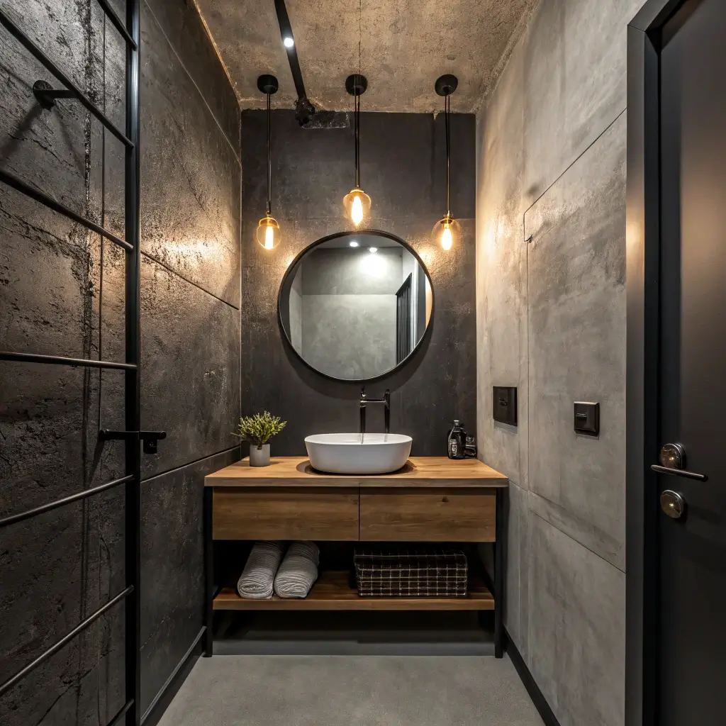 Concrete powder rooms sound cold, but done right, they’re incredibly chic. I used concrete-look porcelain tiles in my last industrial project (real concrete’s too high-maintenance for most clients) and paired them with warm wood and black fixtures.