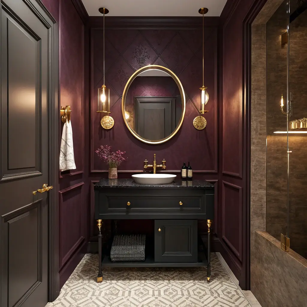 Plum plays surprisingly well with both warm and cool metals. Brass fixtures make it feel romantic; chrome keeps it modern. I’ve even done rose gold fixtures with plum walls – talk about unexpected luxury.