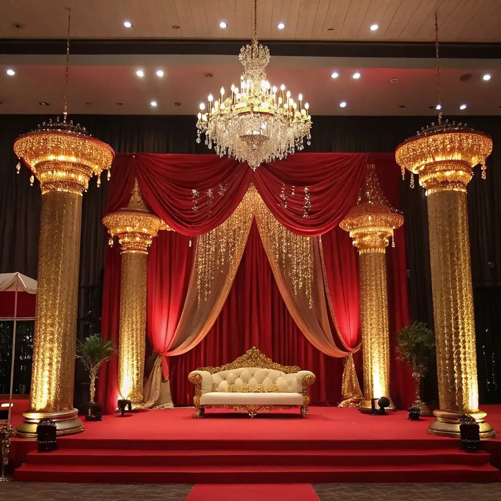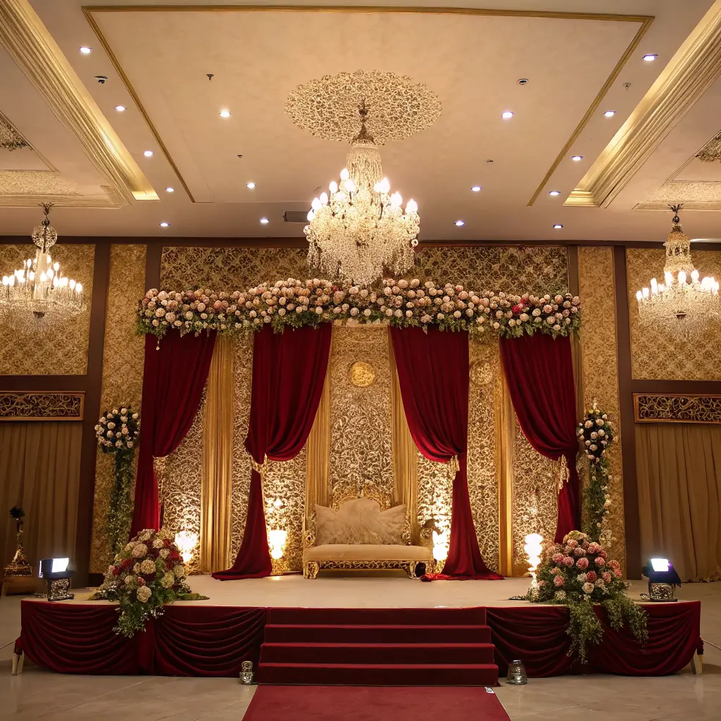 Here’s where you can go all out with the bling without looking tacky. The key? Choose your statement pieces wisely. Maybe it’s an elaborate mandap with crystal chandeliers, or perhaps stunning gold-leafed entrance doors. Whatever you choose, make it memorable but maintain balance throughout the space.