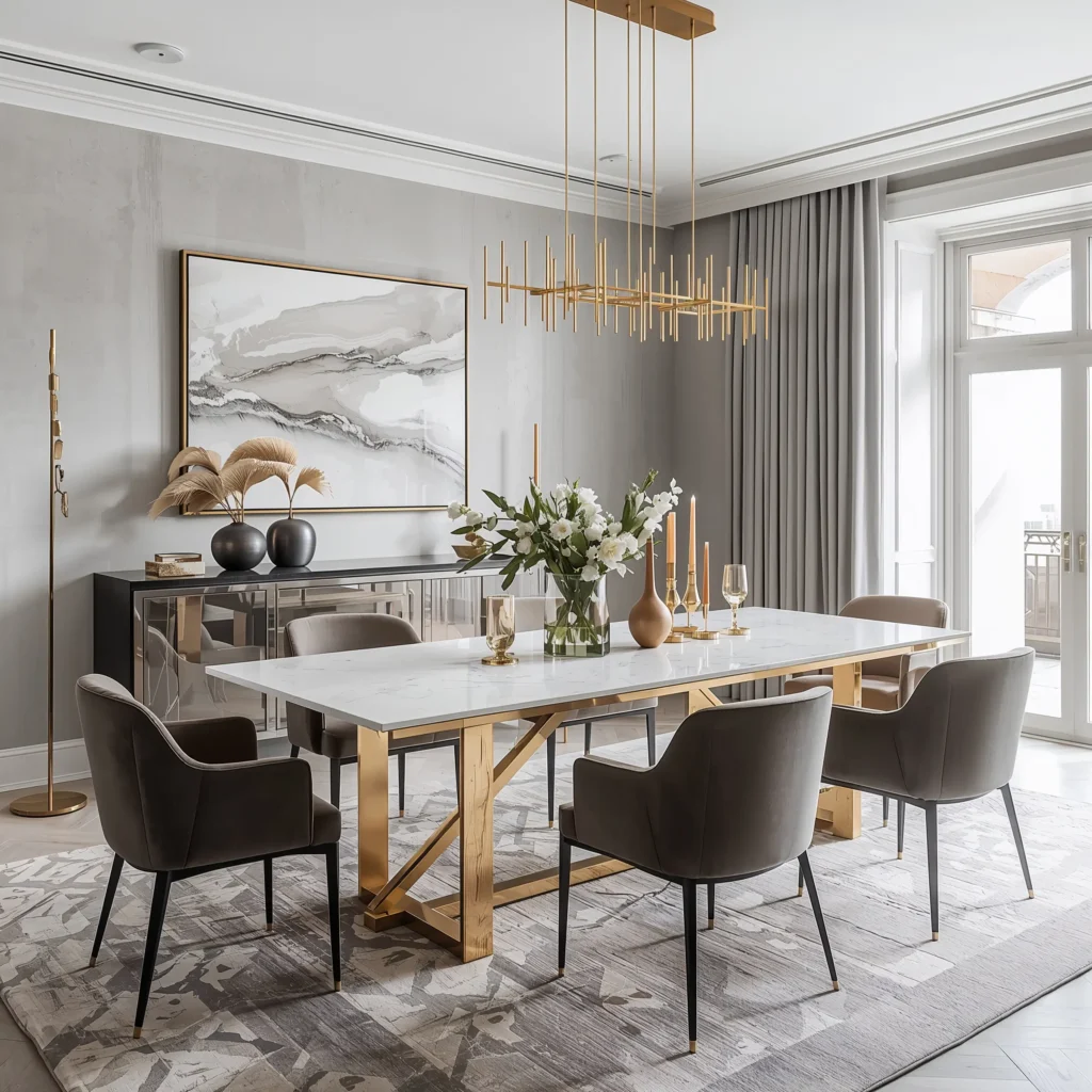 Nothing screams luxury quite like marble paired with gold. I remember walking into a client’s home last year and stopping dead in my tracks when I saw their Calacatta marble dining table with brushed gold legs. The veining in the marble looked like abstract art, and those gold accents? Pure magic.