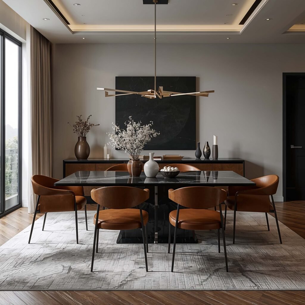 Leather dining chairs paired with modern tables create this amazing tactile experience that fabric can’t replicate. The combination of smooth table surfaces with supple leather engages multiple senses, making dining more immersive.