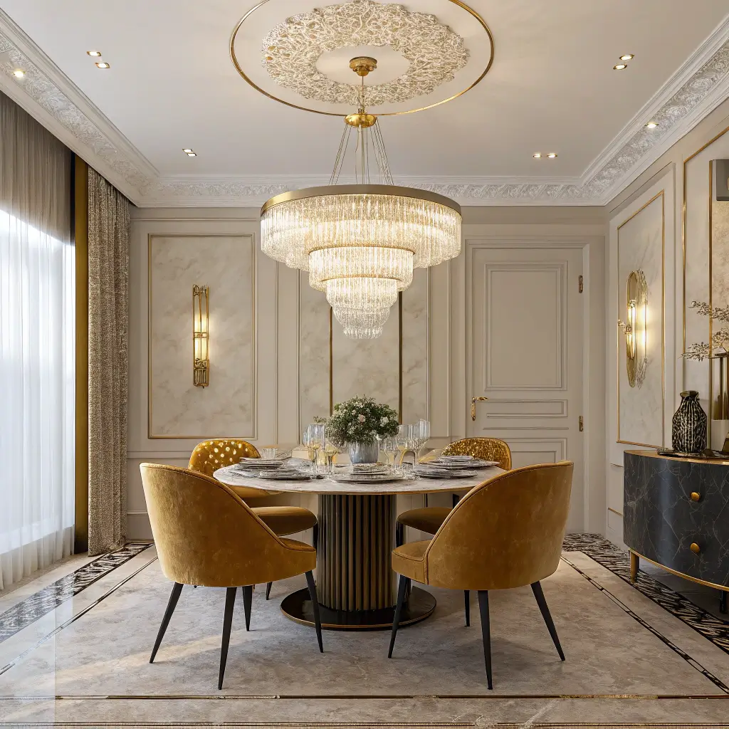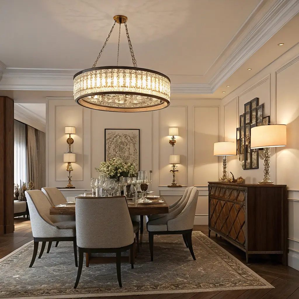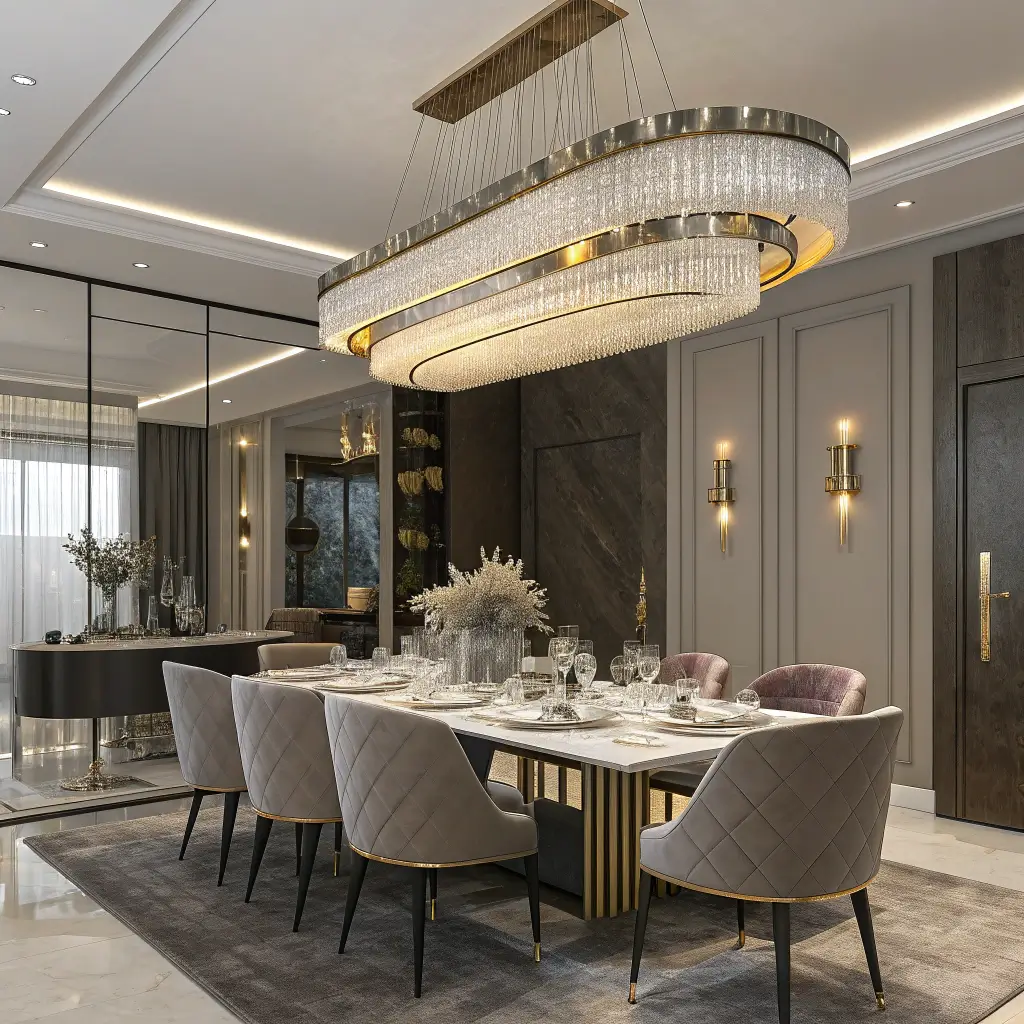 Sometimes you just want to feel fancy, and glamorous lighting delivers that red-carpet feeling right to your dining table. These fixtures don’t just light your room – they own it.