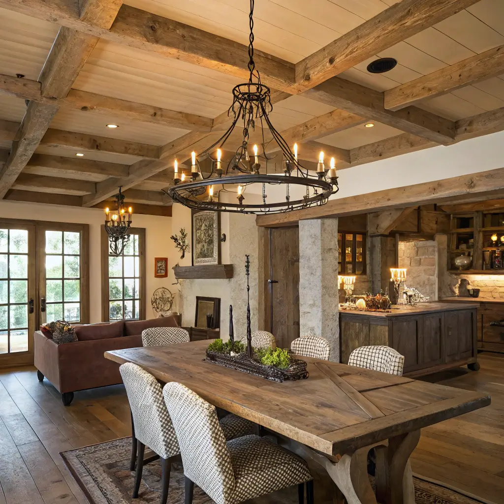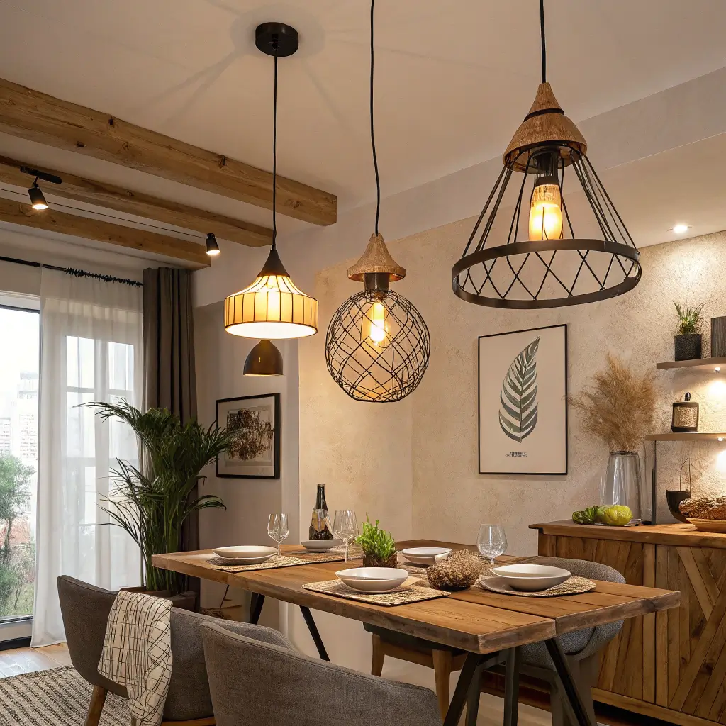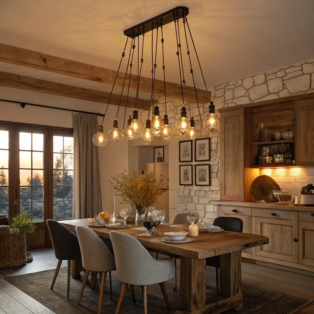 The best rustic lighting today mixes old-world charm with modern functionality. Think weathered wood paired with sleek black metal, or rope-wrapped fixtures with LED technology. This fusion prevents your dining room from looking like a theme restaurant.