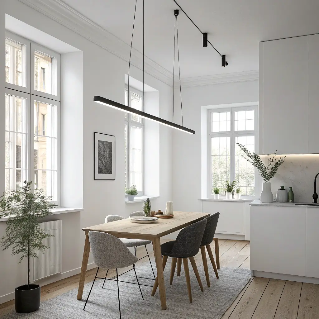 Linear suspension lights have completely taken over modern dining rooms, and for good reason. These horizontal fixtures stretch across your table like a stylish exclamation point. They distribute light evenly, which means no more fighting over who gets stuck in the dark corner.