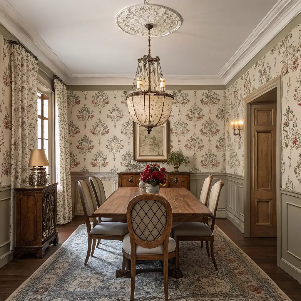 Vintage Patterned Wallpaper for Dining Rooms