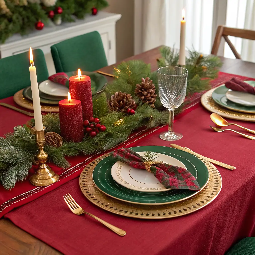 Christmas calls for strategic sparkle. Instead of covering everything in glitter (cleanup nightmare), choose specific elements to shine. Metallic chargers, sparkly napkin rings, or a glittered branch centerpiece add glamour without the mess.