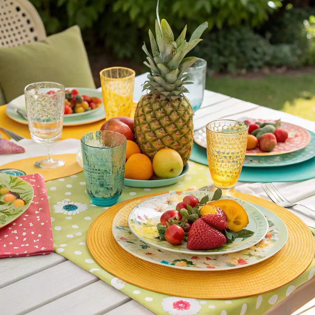 Use tropical fruits as decor. Hollow out pineapples for vases, float lemon slices in water pitchers, or pile limes in glass bowls. This decor doubles as snacks or cocktail ingredients – efficiency at its finest!
