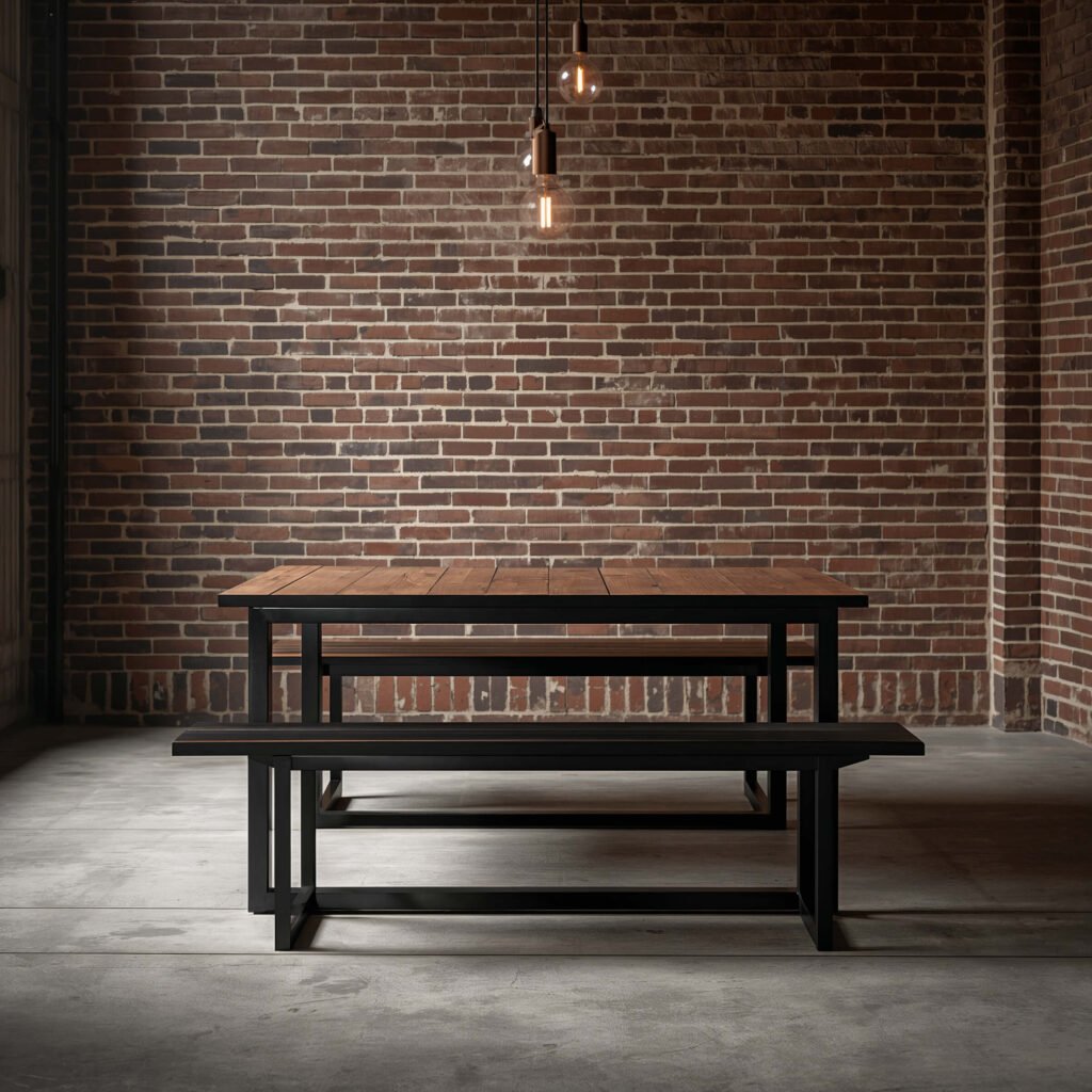 Remember when industrial design meant “looks like it belongs in a factory”? Well, modern industrial bench dining setups have evolved into something way cooler. Think refined rawness – if that’s even a thing.