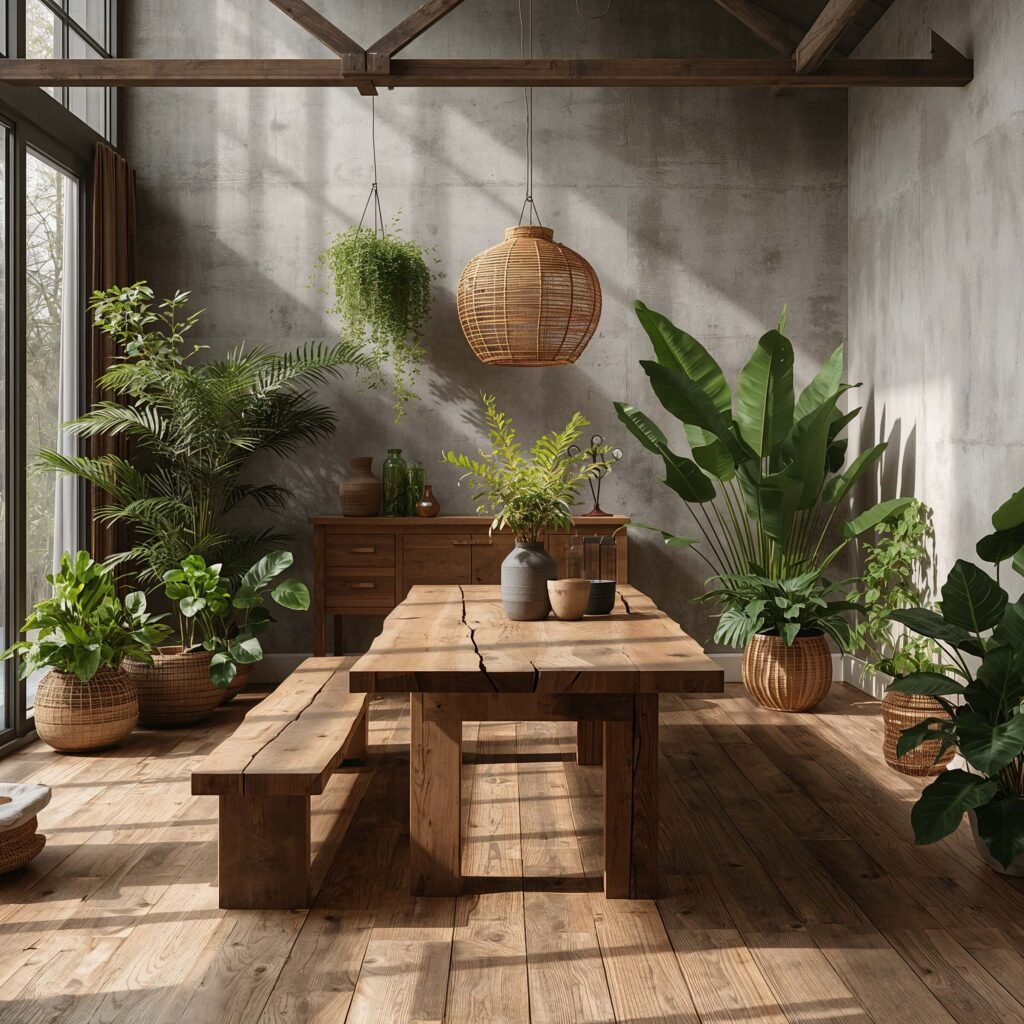 Outdoor-Inspired Wooden Bench Dining Style