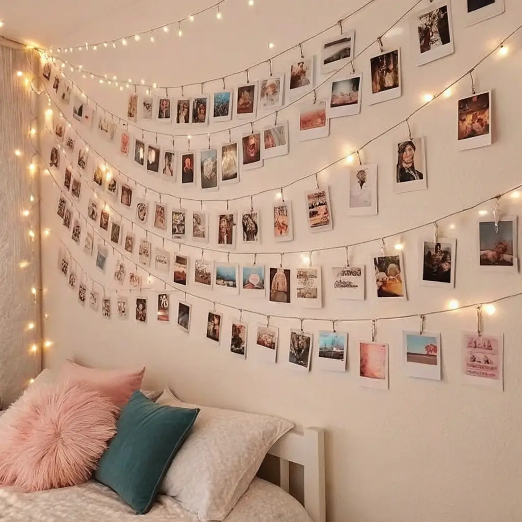 String them up with twine and mini clothespins, or go rogue and use washi tape directly on the wall. I change mine seasonally – summer road trips in July, cozy autumn vibes in October. It’s like having a constantly evolving gallery of memories.