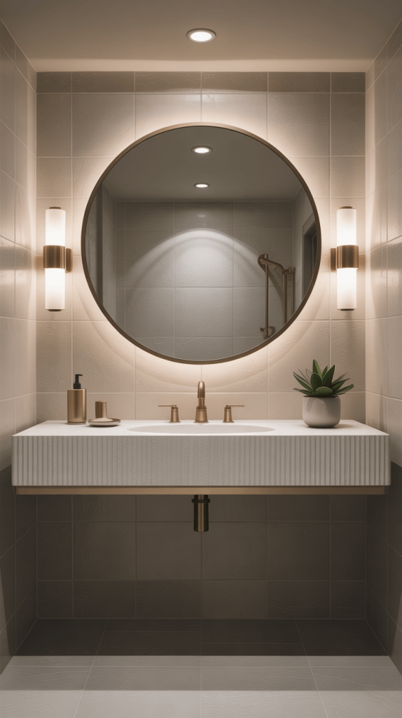 - The Mirror: Go big! A large mirror, or even a mirror covering the entire wall behind the vanity, will amplify light and make the space feel huge. Add sconces on either side for the perfect, shadow-free lighting for grooming.