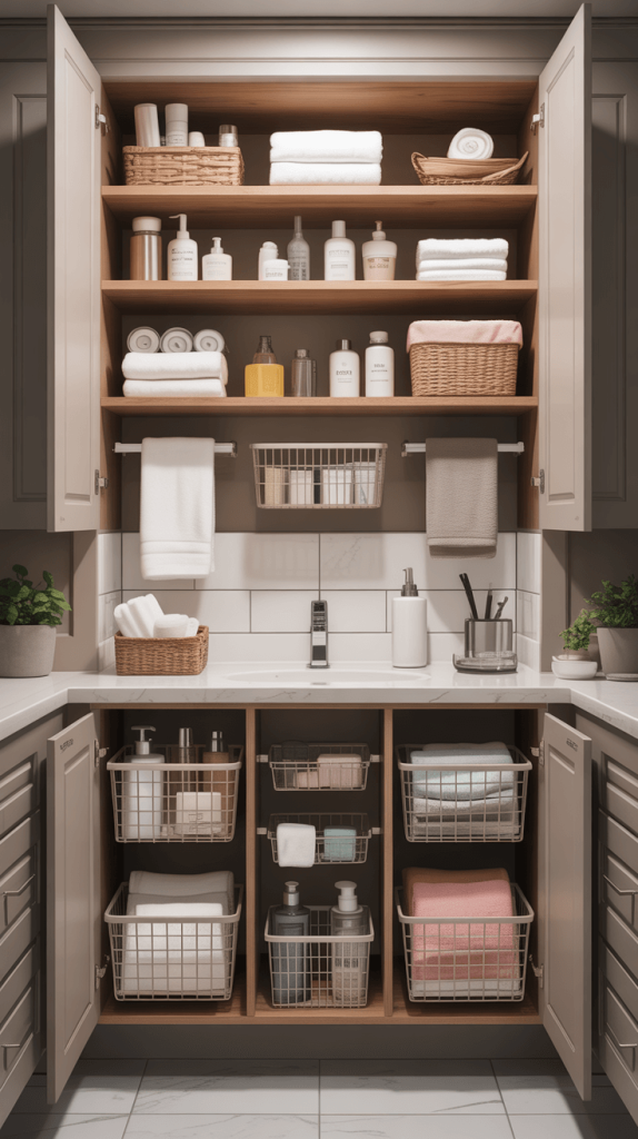 Let’s be real: bathroom clutter is the worst. Q-tips, lotions, half-used products—it all needs a home. Smart storage is what separates a good bathroom from a great one.