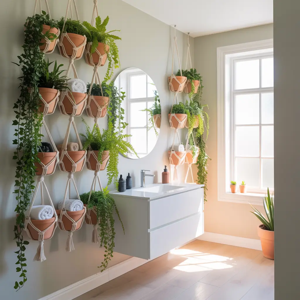 I’ve got three macrame planters at different heights holding everything from spare washcloths to travel-sized toiletries. They add texture and interest while being genuinely useful.
