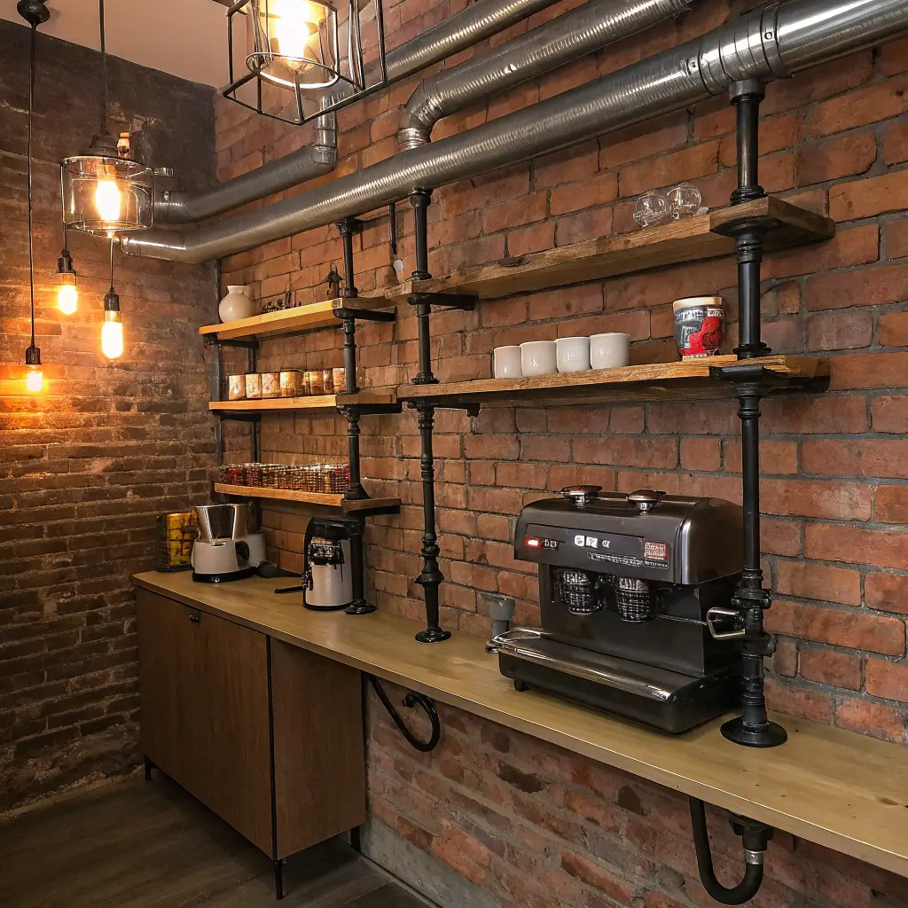 Industrial Pipe Wall Coffee Bar