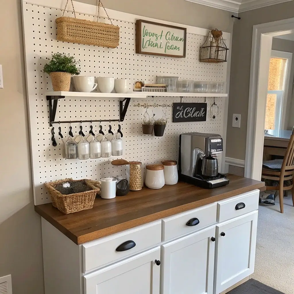 Coffee Bar with Pegboard Organization