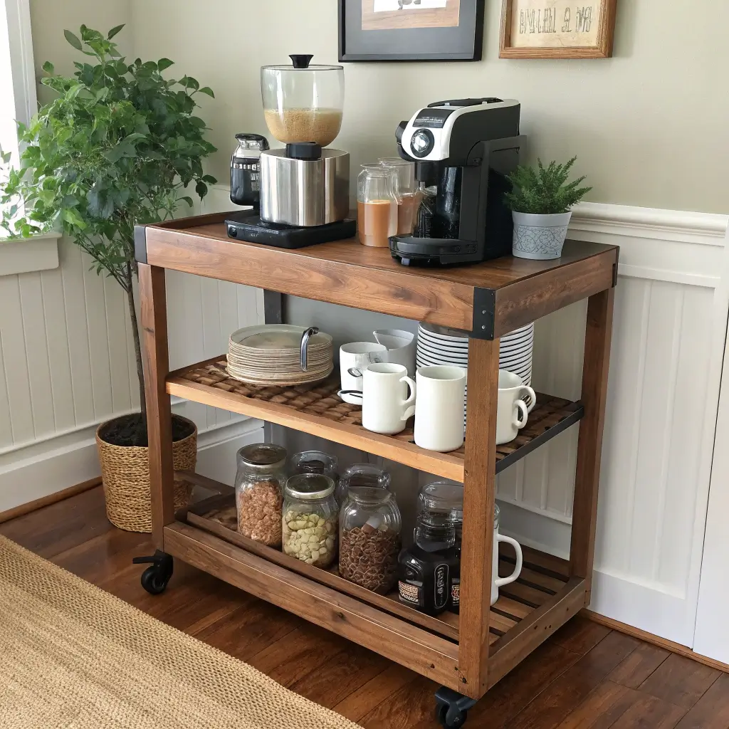 Remember those old bar carts your grandma had? The ones that probably held more dusty bottles than actual drinks? Well, they’re having a moment, and they make killer coffee stations.