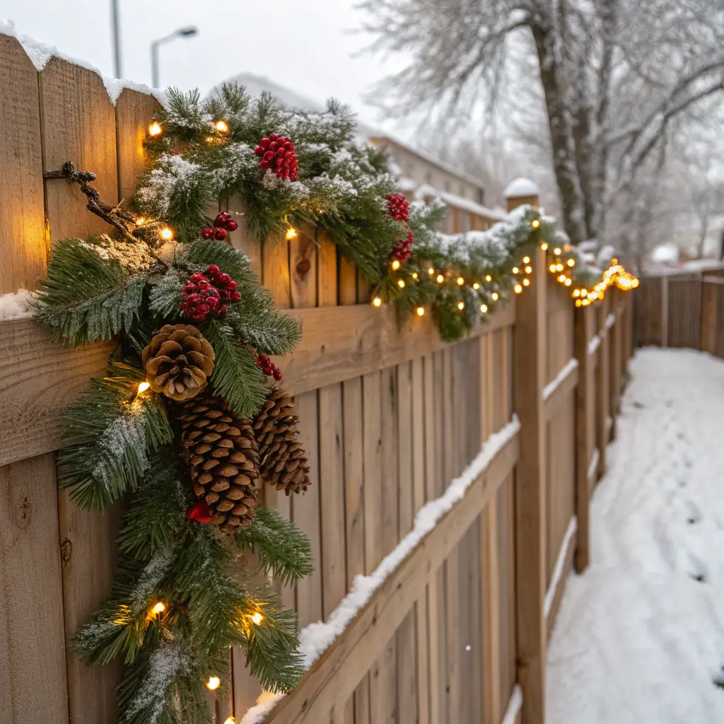 Creating pinecone garland requires patience but zero skill. Thread fishing line through the pinecones (a hot glue gun helps secure them), add some artificial berries and greenery between them, and you’ve got yourself magazine-worthy fence décor. Budget: practically nothing if you forage for materials.