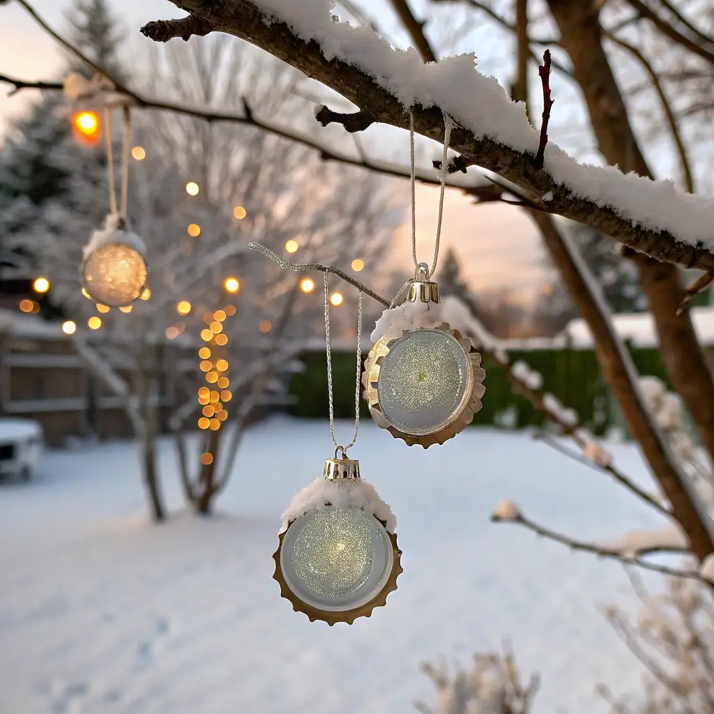 Frosted Bottle Cap Ornaments