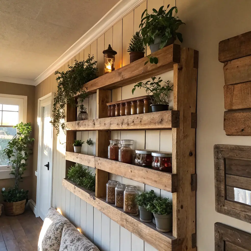 Pallet wood brings this rustic, weathered texture that you literally can’t buy in stores. I made my kitchen spice rack from pallet wood, and it looks like something from a farmhouse magazine spread. The natural imperfections and nail marks tell a story that manufactured wood just can’t match.