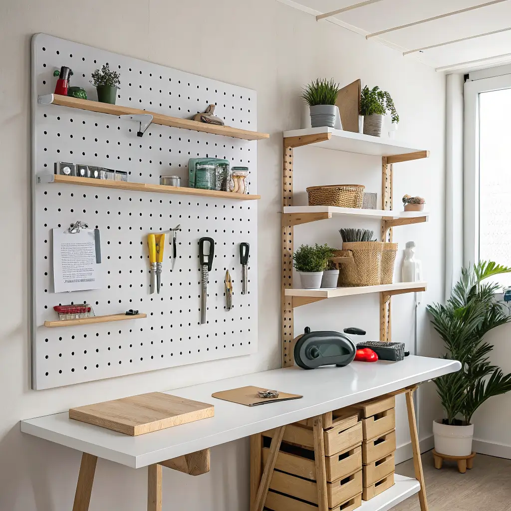 Pegboard isn’t just for garage workshops anymore. Modern pegboard systems offer infinite customization with a clean, minimalist aesthetic.