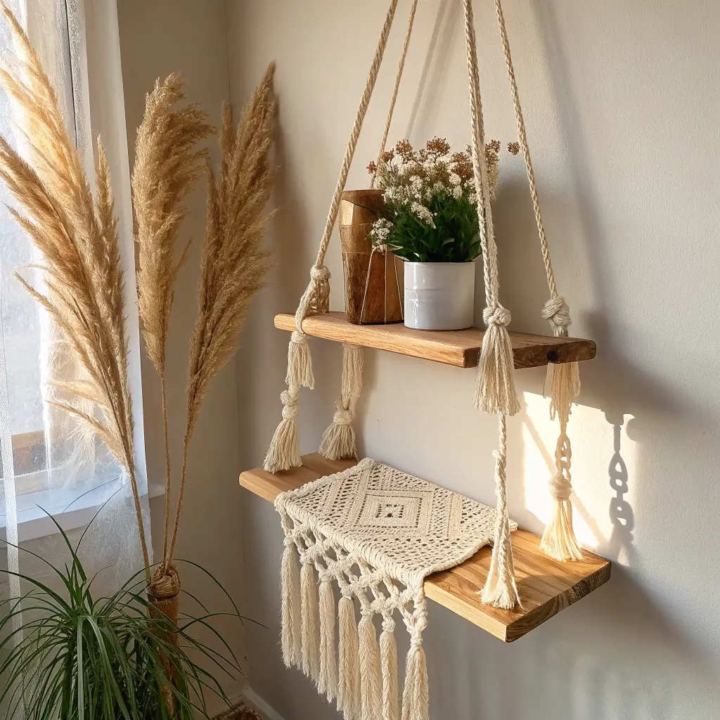 Macramé made a comeback, and honestly, I’m here for it. These bohemian-inspired hanging shelves add texture and warmth while being surprisingly practical.