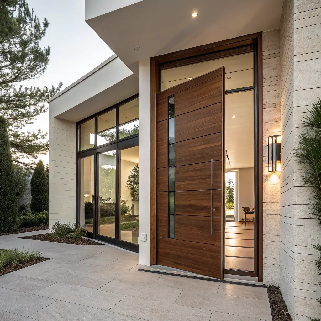 Pivot doors are the rebels of the door world. Instead of swinging from the side, they rotate on a central axis, creating this dramatic, unexpected movement that never gets old. Every entrance feels like you’re entering somewhere important.