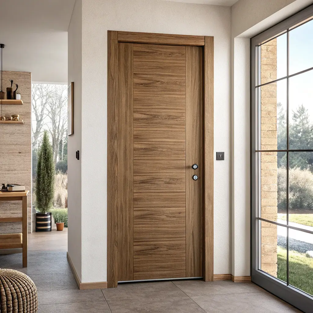 Let me start with my personal favorite – the modern wooden door with vertical panels. There’s something about those clean, vertical lines that just screams sophistication without trying too hard. Think of it as the little black dress of door designs – always appropriate, never outdated.